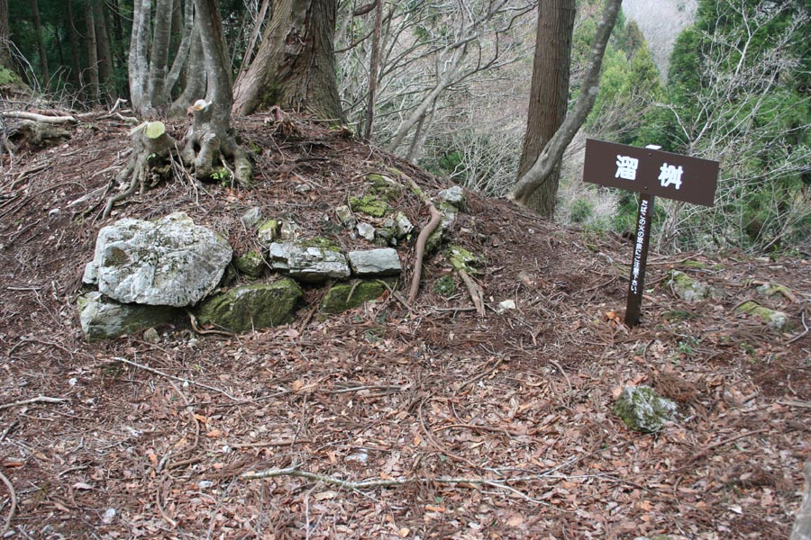 朽木谷に桜が満開の日に登頂しながら、あいにくの小雨に見舞われ、山上から望めるという琵琶湖こそ見えなかったが、手入れの行き届いた城址は見所がいっぱいだった。城址の近くには愛宕神社が祭られ、いまも参拝者が多いというが、神社の倉庫とおぼしき建物の物陰に一升瓶がごろごろと転がっていたのが残念であった。