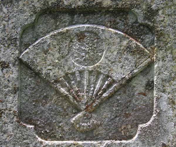 写真:甲賀に残る佐治家の墓石に据えられた九本骨扇紋