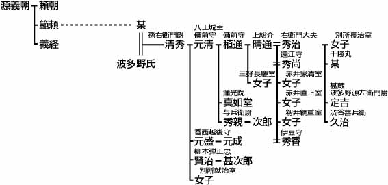 波多野氏は相模波多野庄に住んだ藤原秀郷の後裔、波多野義通の後裔といわれる。しかし、最近石見の豪族吉見氏の一族という説が出ている。すなわち吉見清秀が上洛して細川勝元に仕え、母方の姓を継いで波多野と称したというものだ。応仁の乱で戦功を挙げ、丹波多紀郡を与えられた。「土佐文書」に清秀が丹波多紀郡小守護代として見えることからとなえられている説だ。いずれにしても波多野氏の出自は定説はないというのが実情だ。