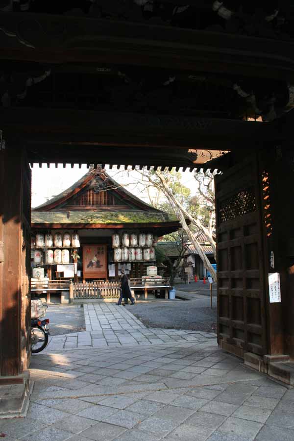 奈良時代から平安時代にかけて冤罪を蒙り怨みを残して悶死した人々の霊魂、つまり怨霊を恐れる思想が広まった。御霊神社はそれらの怨霊が神となった御霊を祀った神社で、 上御霊神社に対して南にあったことから下御霊社と呼ばれた。 社伝によれば、当初は、出雲氏一族の居住地にあった下出雲寺の鎮守社に大和国宇智郡の霊安寺御霊社に祀られていた伊予親王(桓武天皇の第三皇子)とその母の藤原吉子の怨霊をなだめるため、承和六年(839) に祀ったのが始まりといわれている。のちに早良天皇(崇道天皇)、 藤原広嗣、橘逸勢、文屋宮田麻呂、吉備真備、火雷天神を加えた八柱の御霊を祀ったことから八所御霊ともいわれる。 古来、上御霊神社とともに京都御所の産土神として崇敬を受けた。とくに霊元天皇が篤く崇敬され、遺詔によって下社の相殿に祭られた。現在の本殿は、江戸時代の天明八年(1788)に仮皇居の聖護院宮において 造営された内侍所仮殿を寛政三年(1791)に移築したもので、表門は建礼門を移築したと伝える。 |