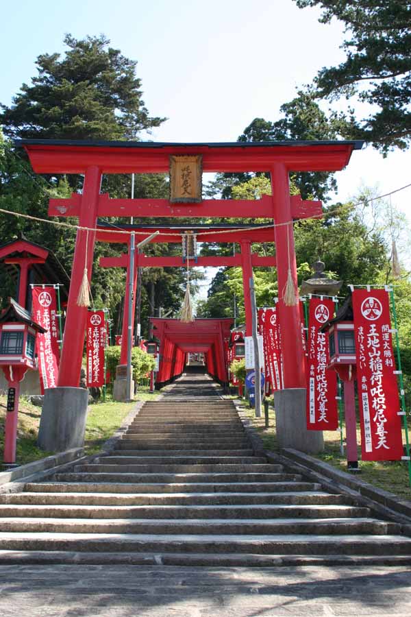 妙長山本経寺は慶長六年(1601)、ときの高崎城主松平安房守(のちに伊豆守)信吉が実母(徳川家康姉)菩提のため、常陸国土浦の地に建立したことが始まる日蓮宗の寺院である。総本山は身延山久遠寺で、開山日泉上人は大本山池上本門寺から派遣された関係から本門寺の末寺であった。元和五年(1619)、安房守信吉は篠山から和泉に転封となった松井松平康重の跡を受けて篠山に入封された。国替えに際して信吉は本経寺本堂を解体し船に乗せ、瀬戸内海に入り、加古川口から曳き船に乗せ替え久下に着き、そこから牛車に乗せて篠山へ陸送、河原町の現在地に移築建立したのであった。そして、京都大本山妙願寺を本山に仰ぎ末寺となった。また、移封に際して城中に祀られていた稲荷大明神像もともに篠山へ奉じ来たり、王地山の地に奥の院として勧請され、以来、王地山大明神と称されるようになった。